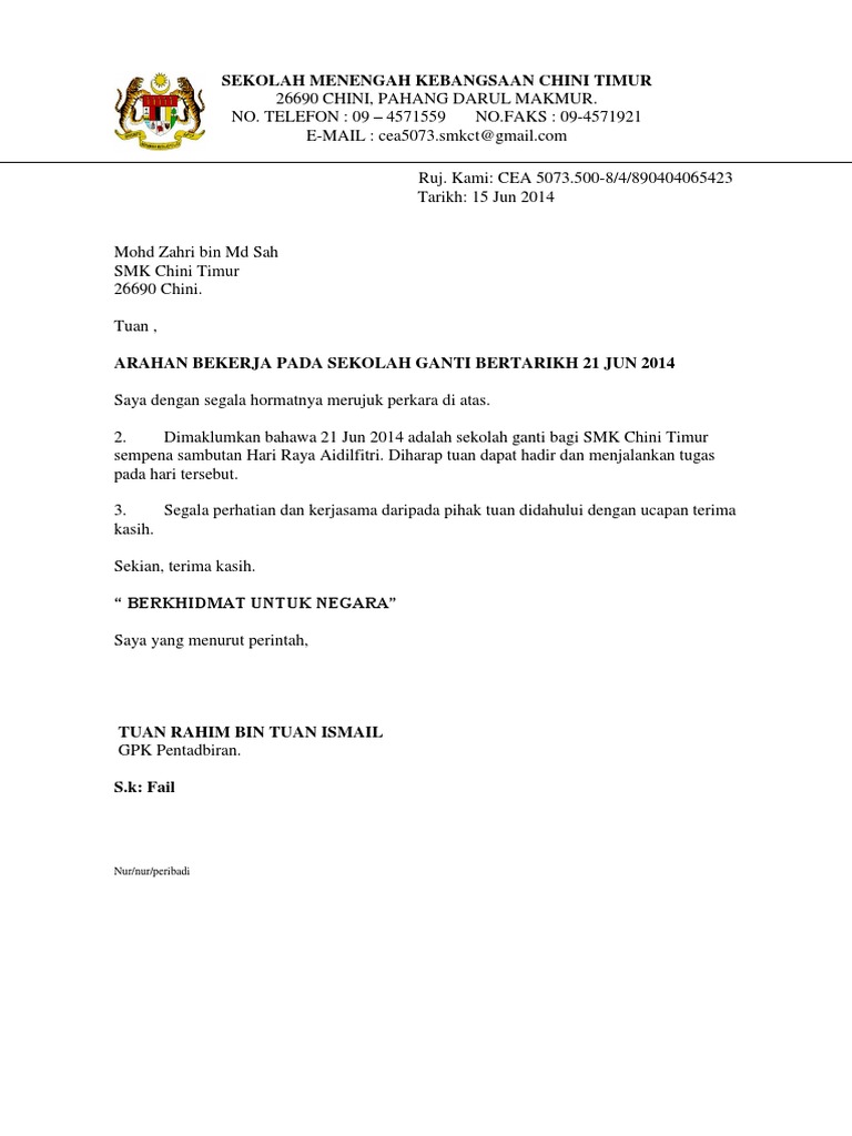 Surat Rasmi Pertukaran Tempat Kerja Letter 7saudara Com from demodokumentips Contoh surat rasmi arahan pertukaran tempat kerja rasmi b. Salinan surat arahan penanggungan kerja. Find more similar flip PDFs like E-BOOK ARAHAN KERJA SELAMAT - NMO WILAYAH KELANTAN.